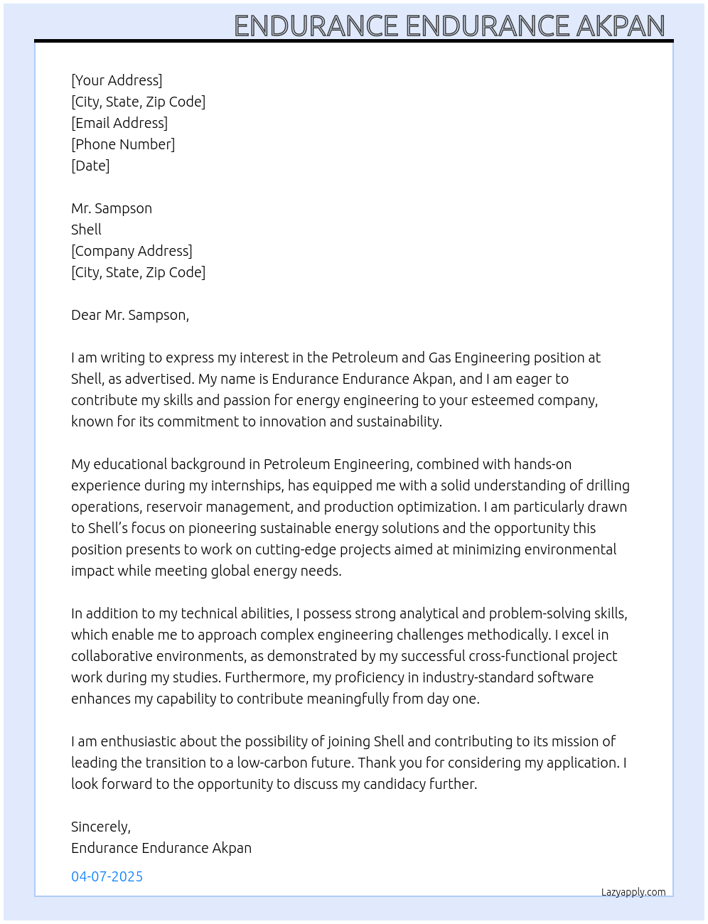 Petroleum And Gas Engineering Cover Letter Examples And Template