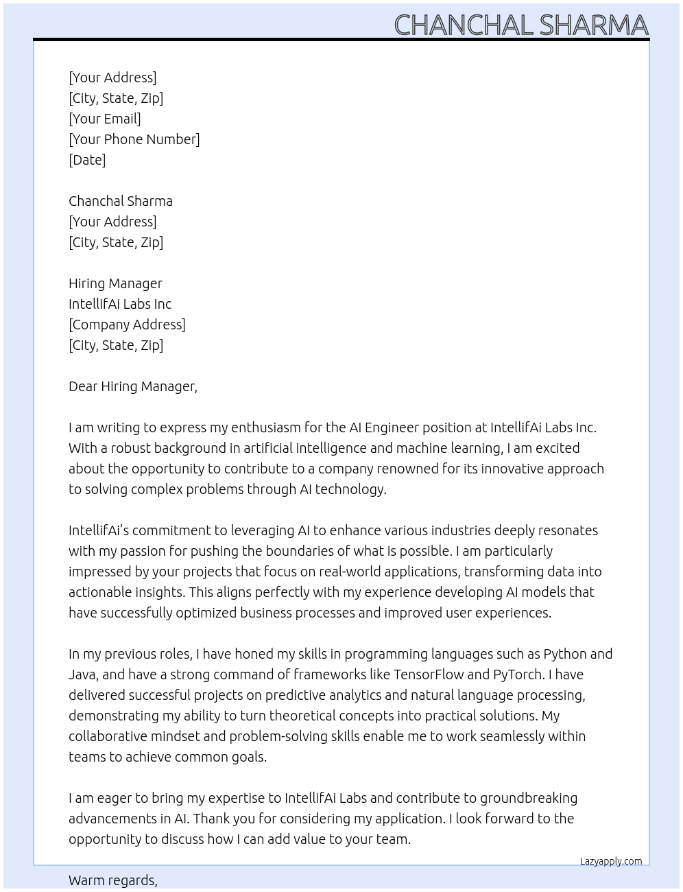 Ai Enginner Cover Letter