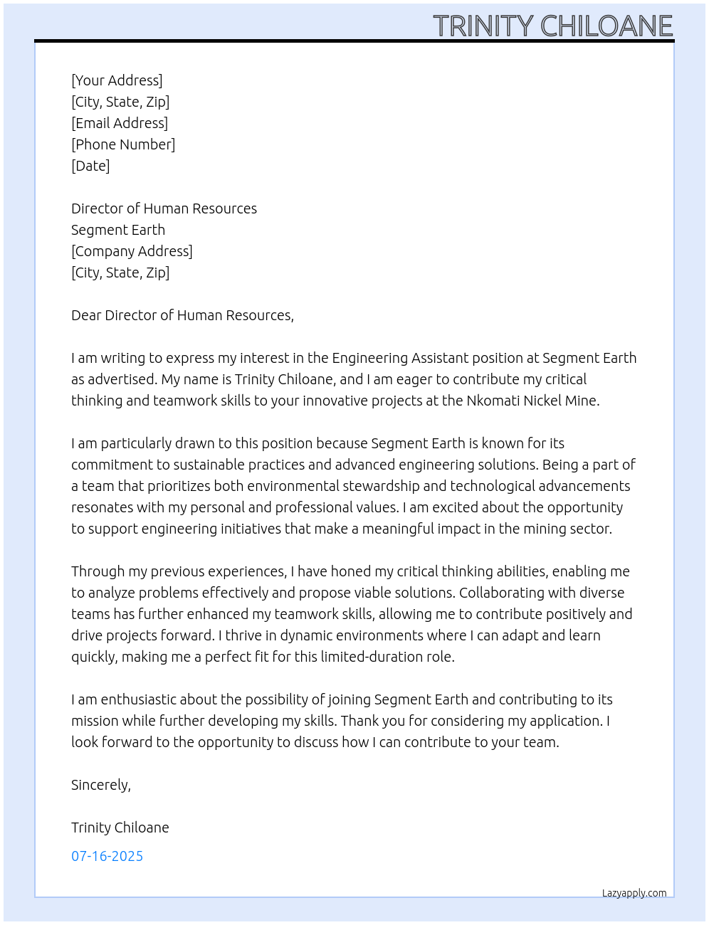 engineering assistant Cover Letter At Segment earth