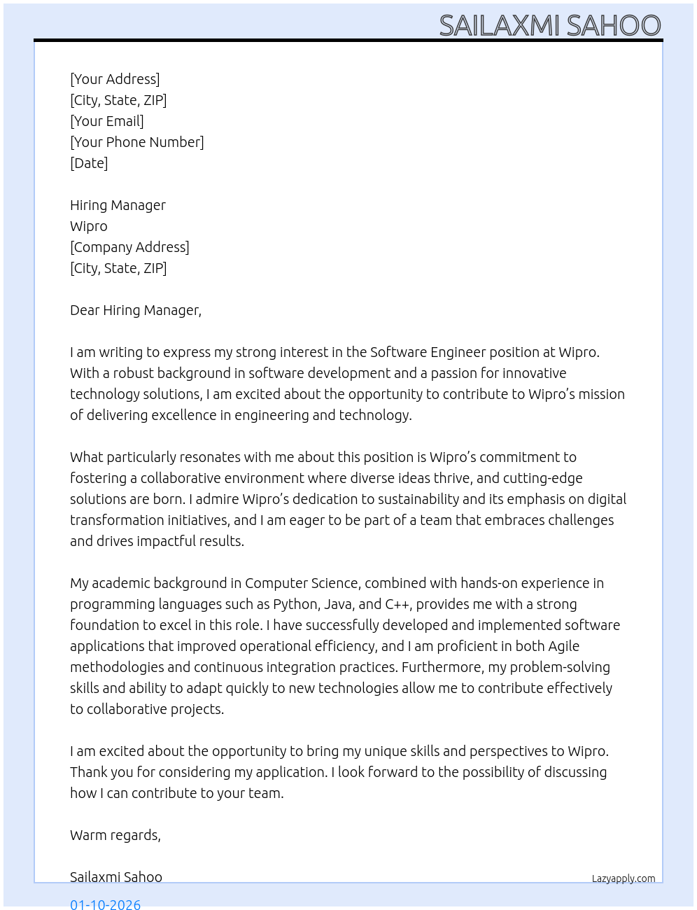 Check out these software engineer cover letter sample and examples previously used by job seekers to land on job interviews as software engineer. Use our AI cover letter generator to create a personalized cover letter as software engineer.