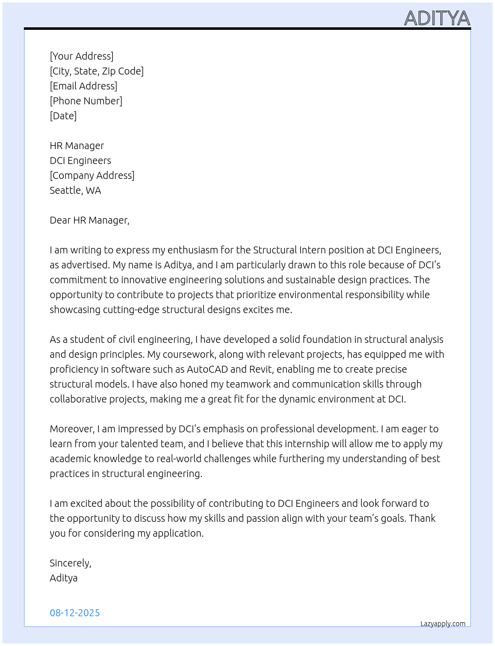 Cover letter for structural intern - LazyApply