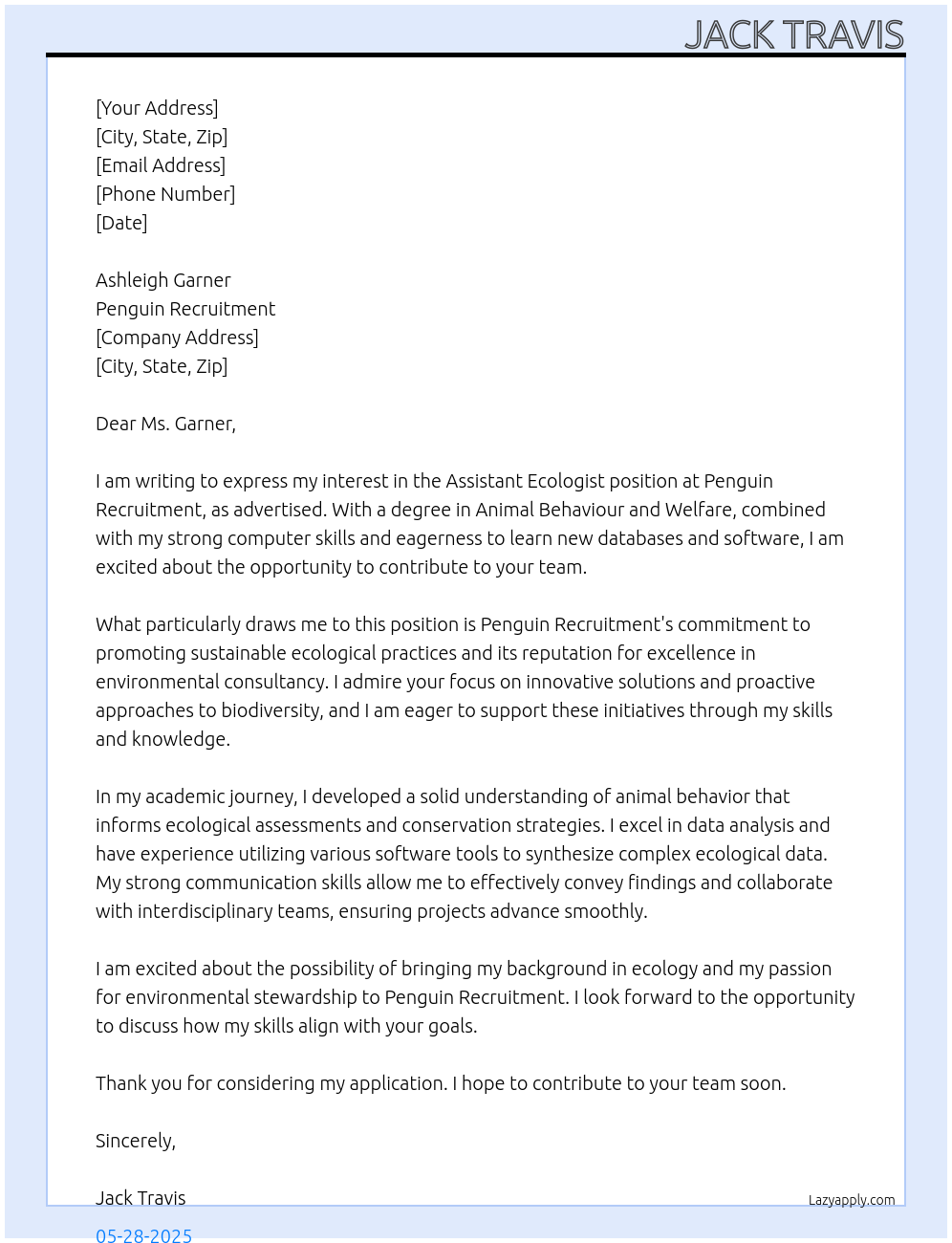Assistant Ecologist Cover Letter At Penguin Recruitment