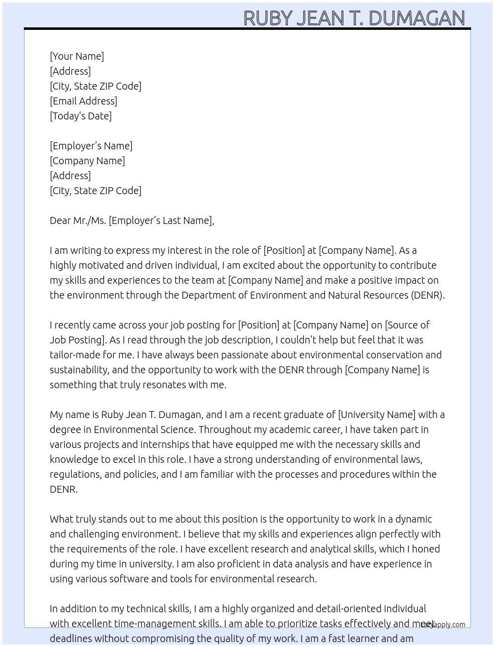 Check out these denr cover letter sample and examples previously used by job seekers to land on job interviews as denr. Use our AI cover letter generator to create a personalized cover letter as denr.