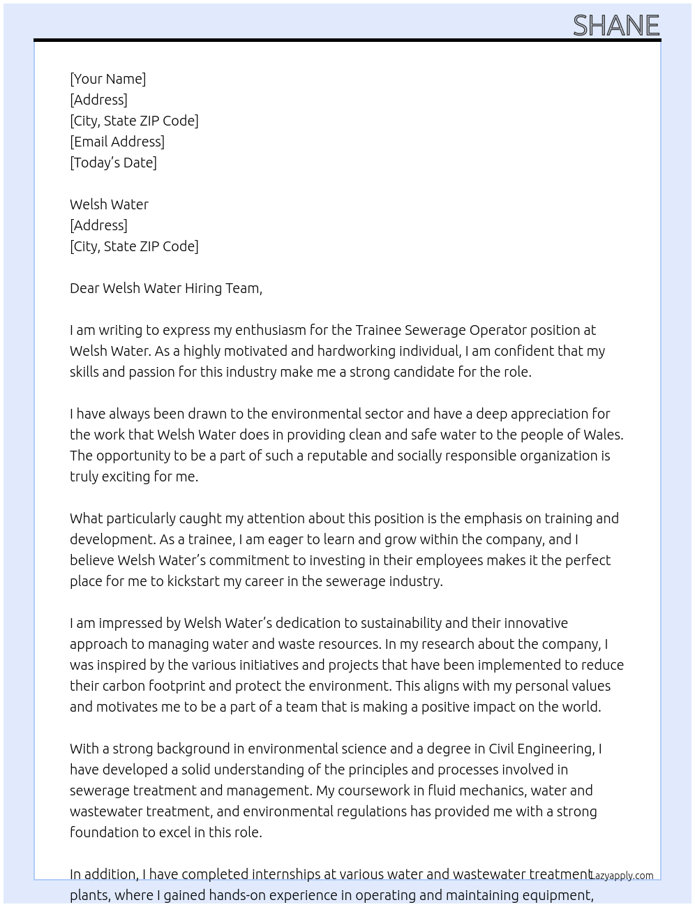 Trainee sewerage operator Cover Letter At Welsh water