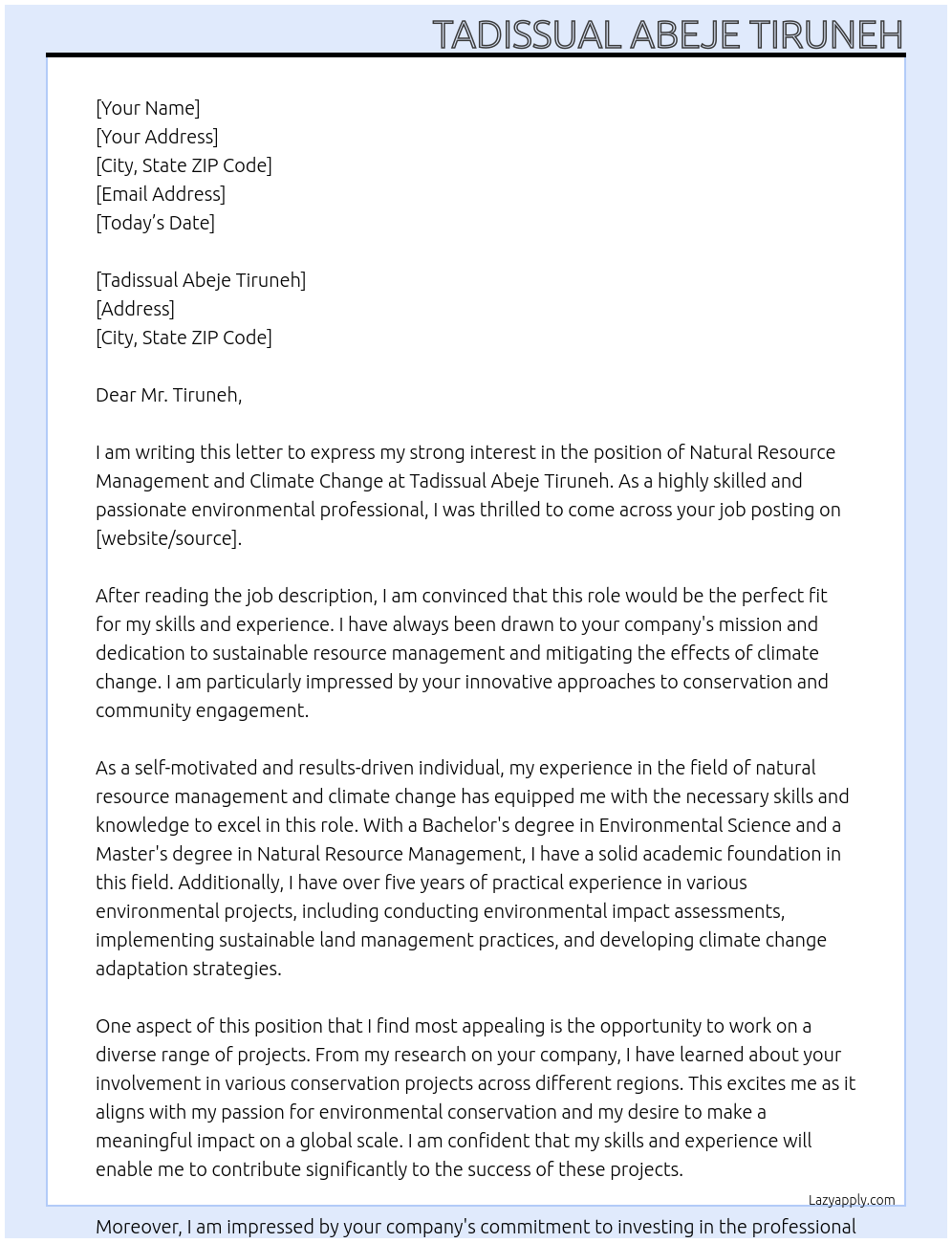 natural rsource management and climate change Cover Letter At Tadissual Abeje Tiruneh