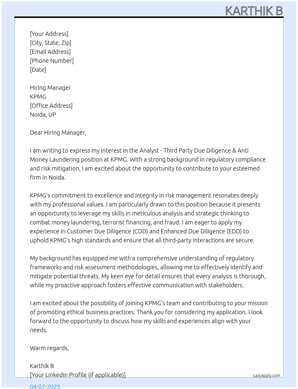 Analyst - Third Party Due Diligence & Anti Money Laundering Cover Letter At KPMG