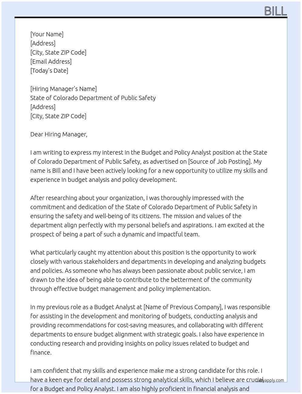 Budget and Policy Analyst Cover Letter At State of Colorado Department of Public Safety