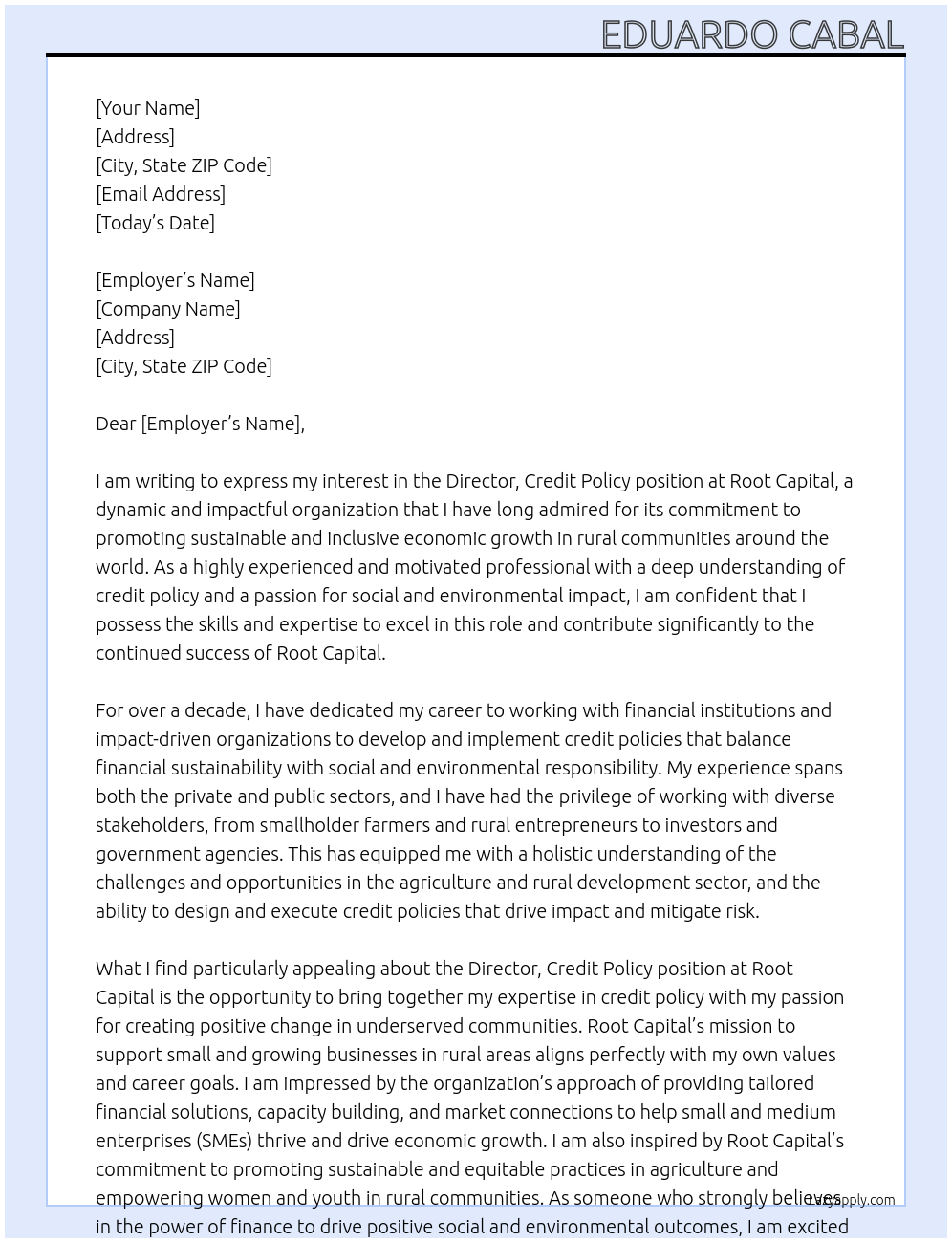 Director, Credit Policy Cover Letter At Root Capital