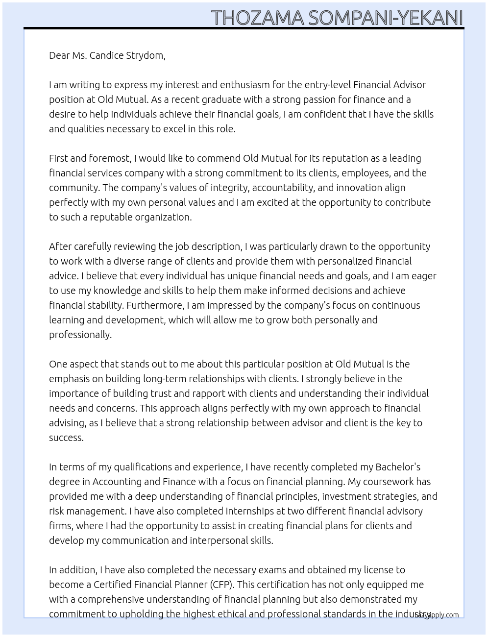 Entry-level Financial Advisor Cover Letter Examples And Template