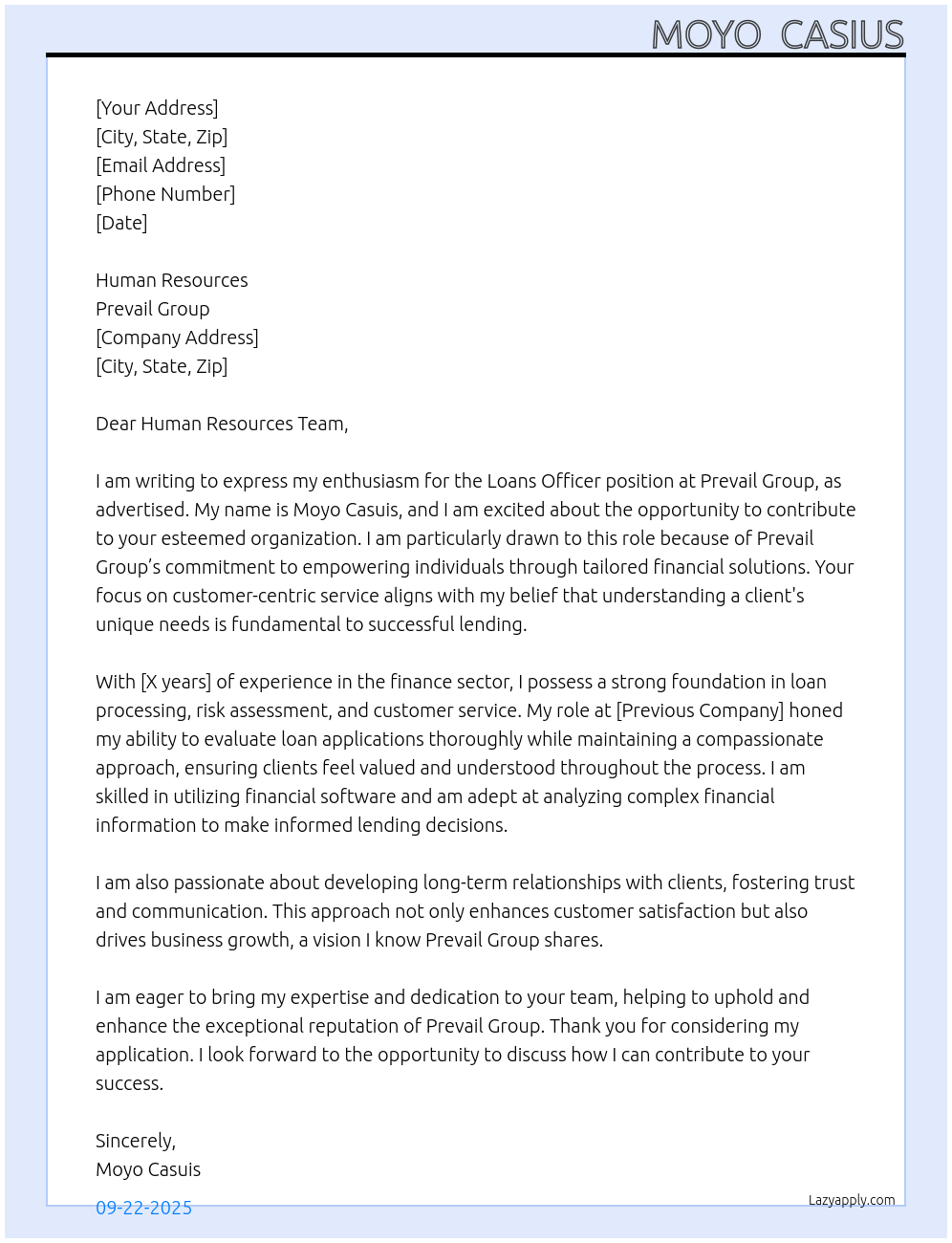 Loans Officer Cover Letter At Prevail Group