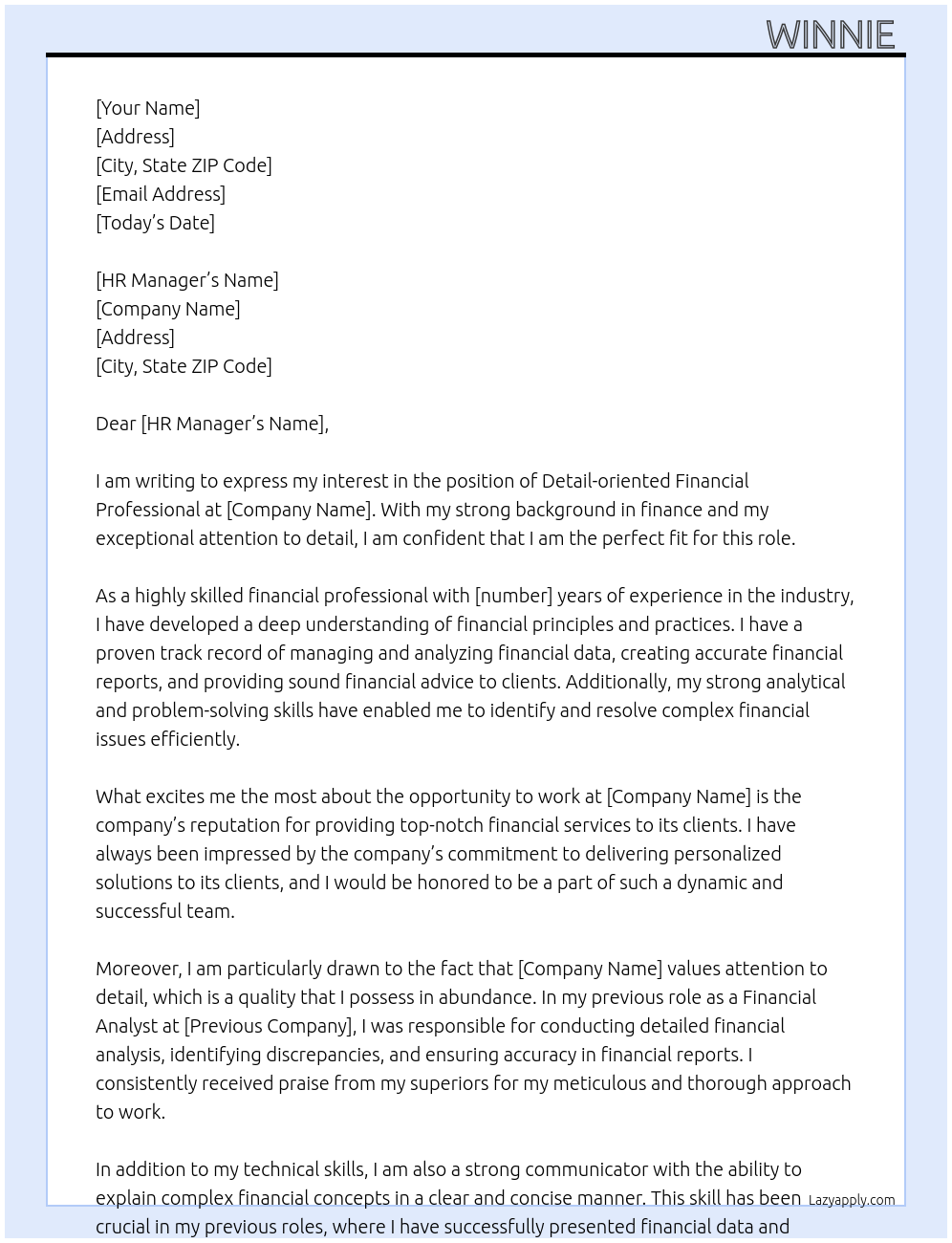 Detail-oriented Financial Professional Cover Letter Examples And Template