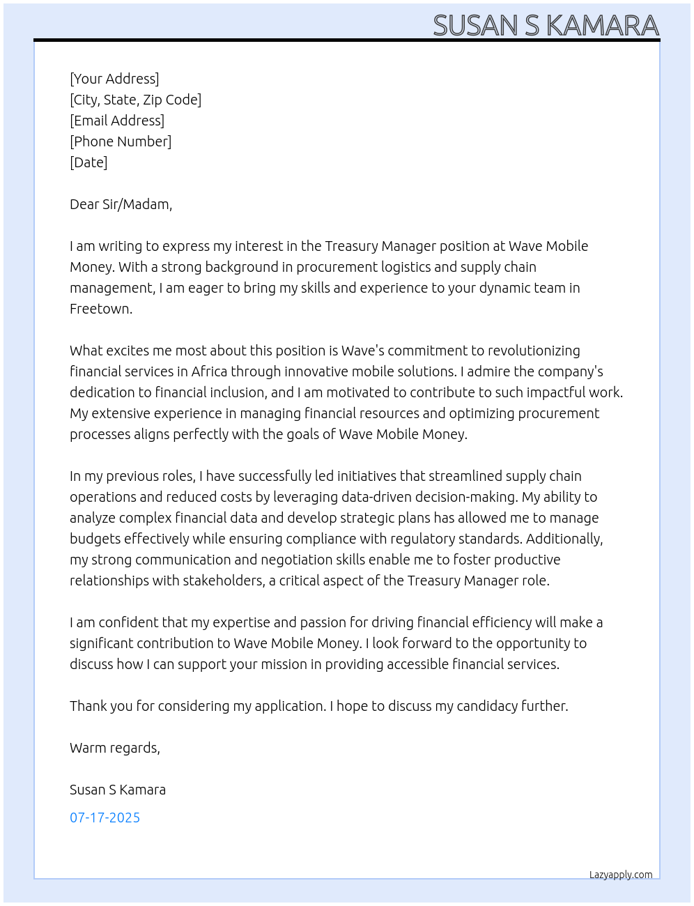 Treasury Manager At Wave Mobile Money  Cover Letter