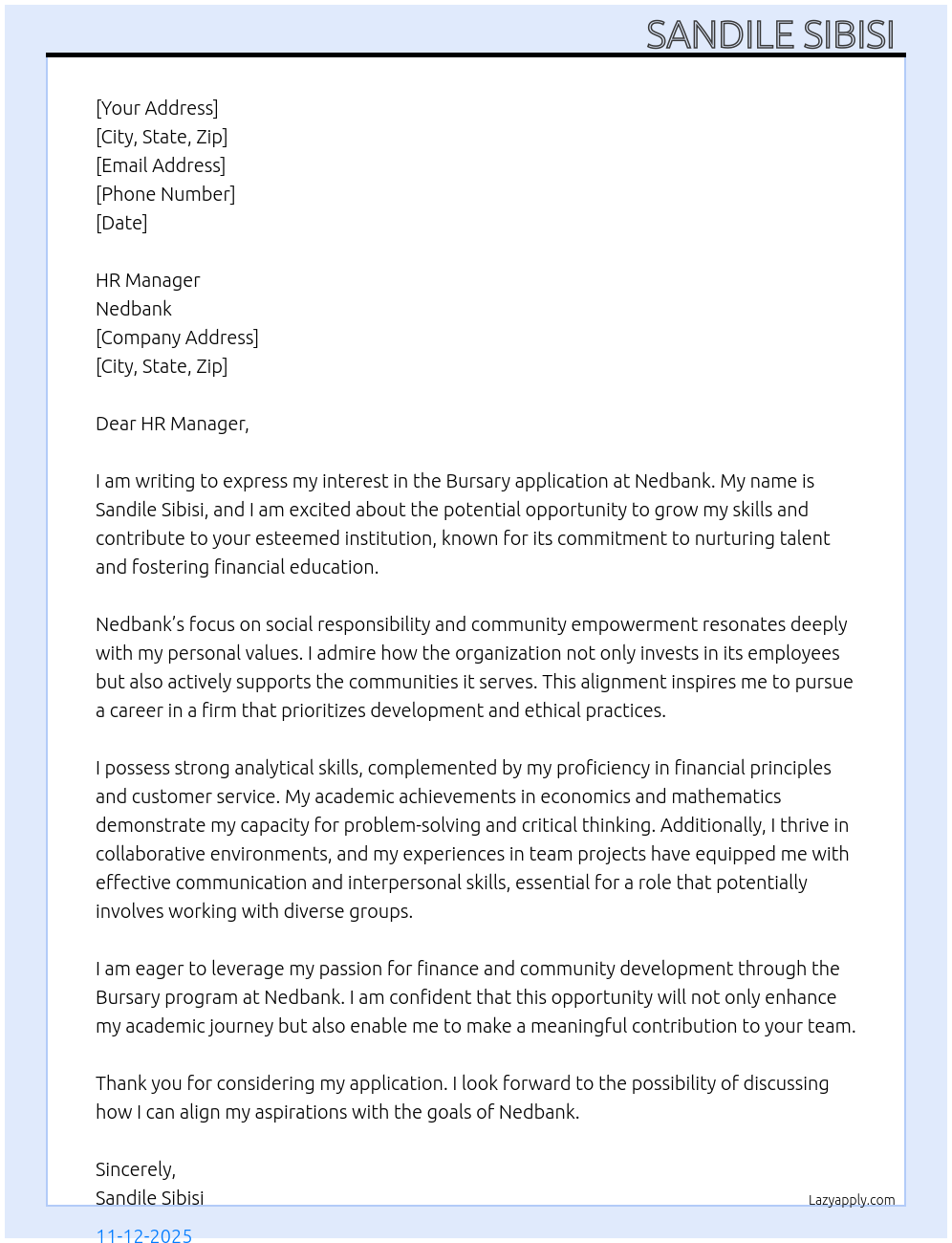 Cover letter for bursary application - LazyApply