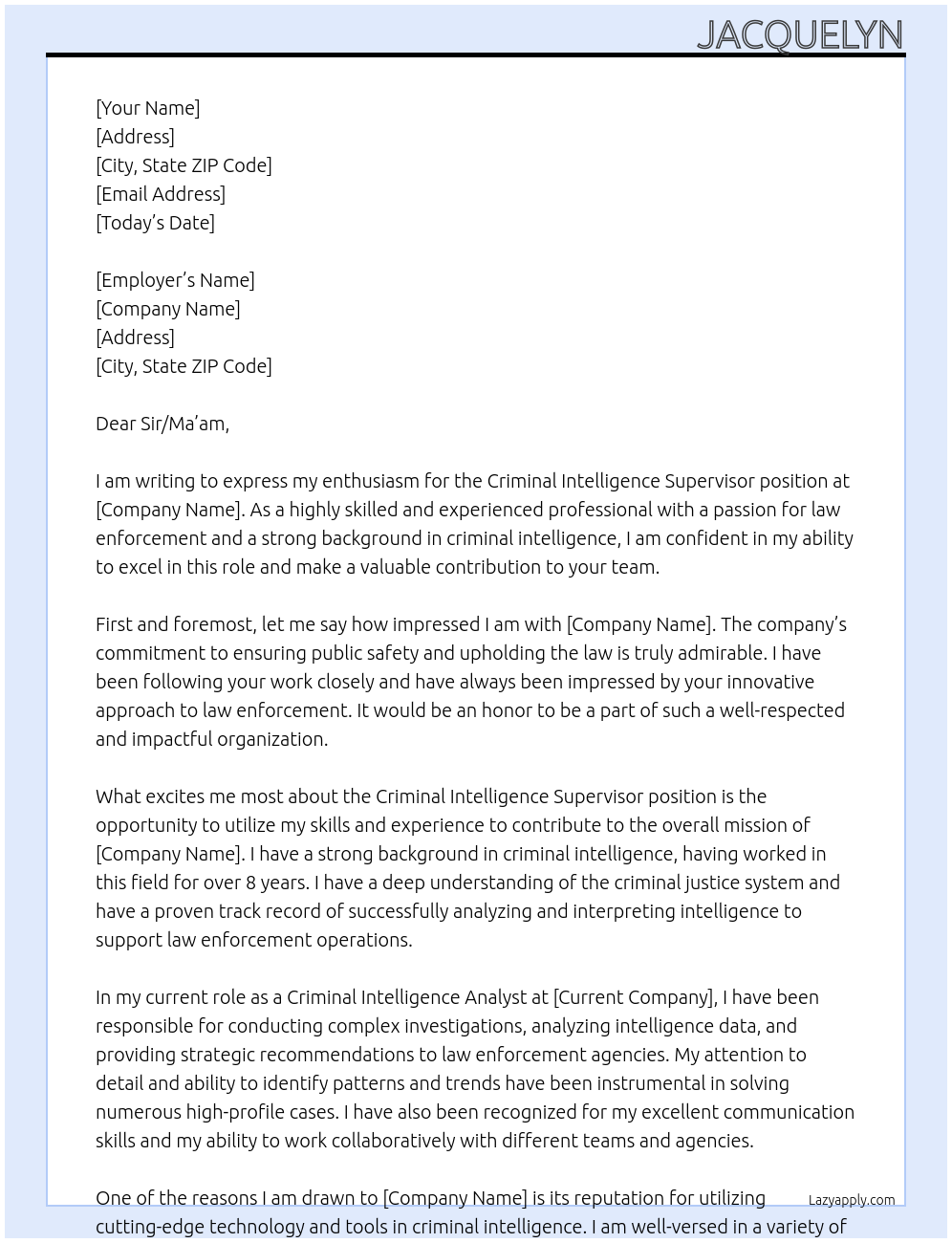 Criminal Intelligence Supervisor Cover Letter Examples