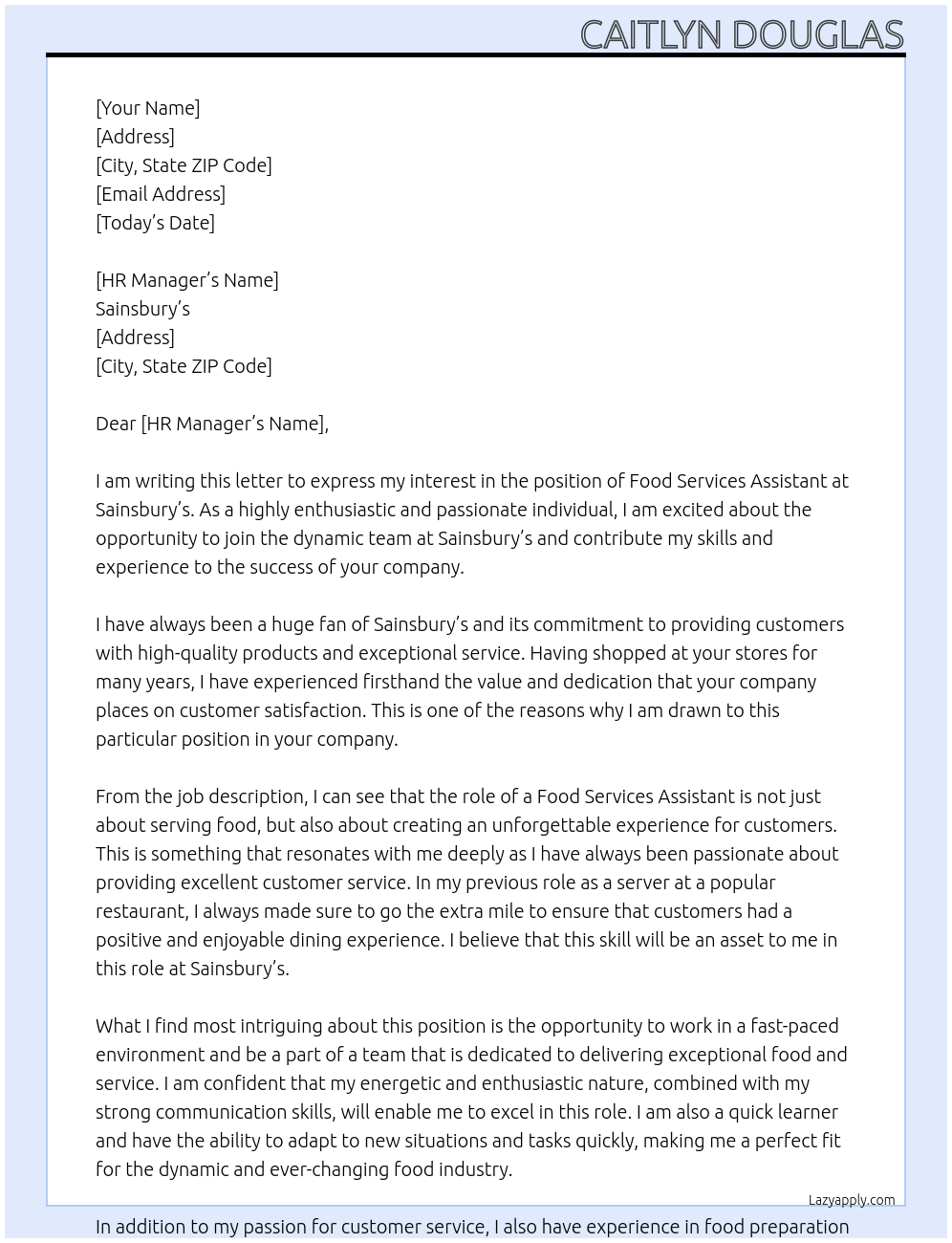 Food Services Assistant Cover Letter At Sainsbury's