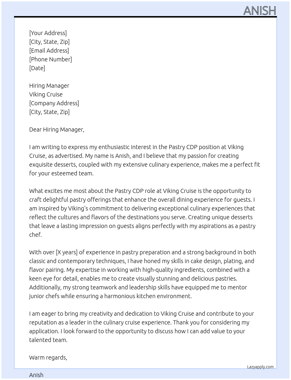 Pastry cdp Cover Letter At Viking cruise
