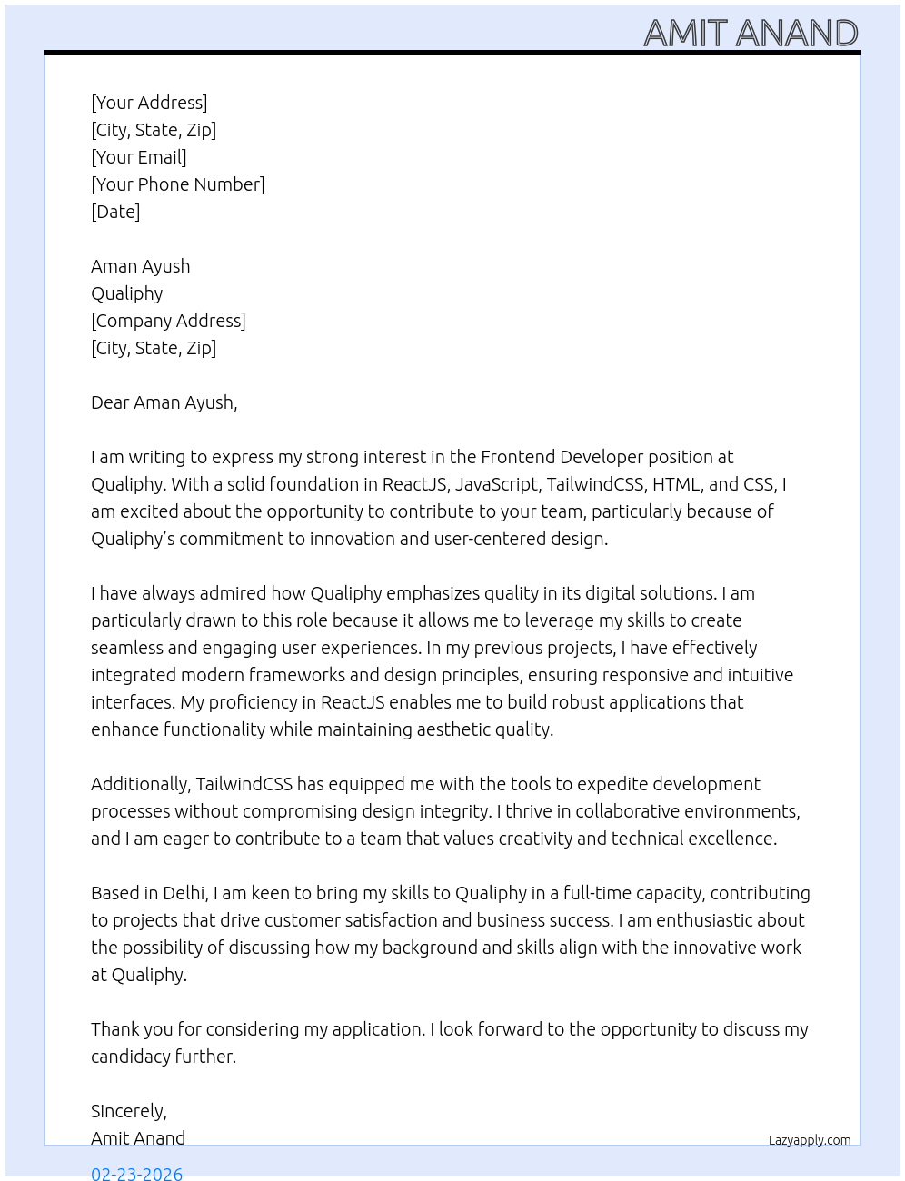 Cover letter for front-end developer - LazyApply