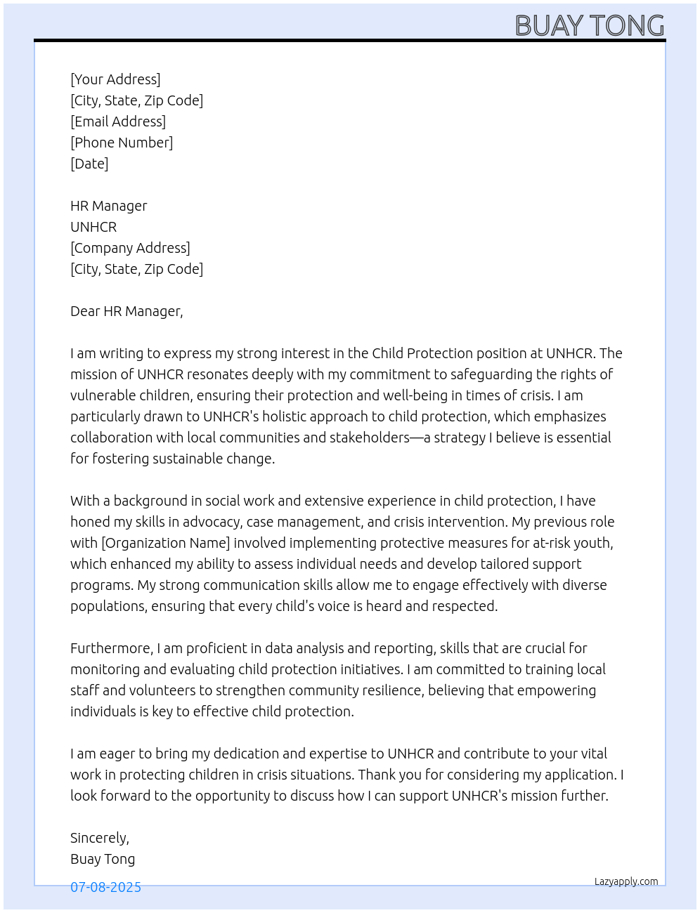 Child Protection Cover Letter At UNHCR
