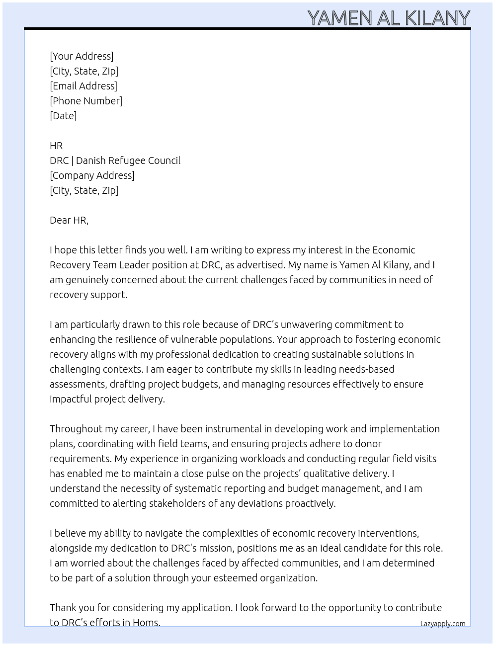 Implement work plans in close liaison with field team members and reports to the Economic Recovery Coordinator