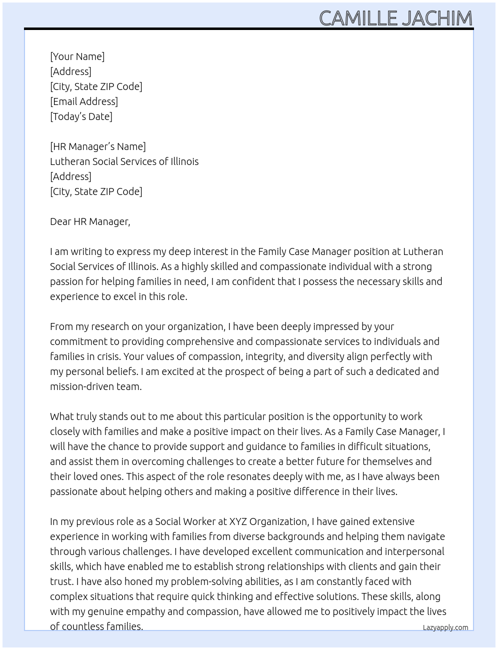 Family Case Manager Cover Letter At Lutheran Social Services of Illinois