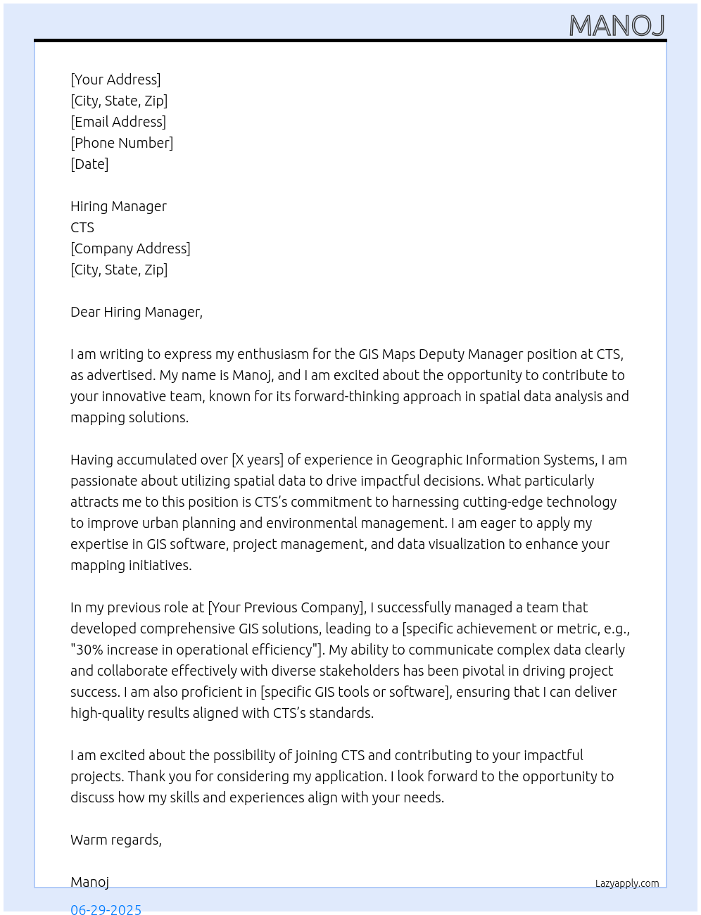 Gis Maps Deputy Mangaer Cover Letter Examples And Template