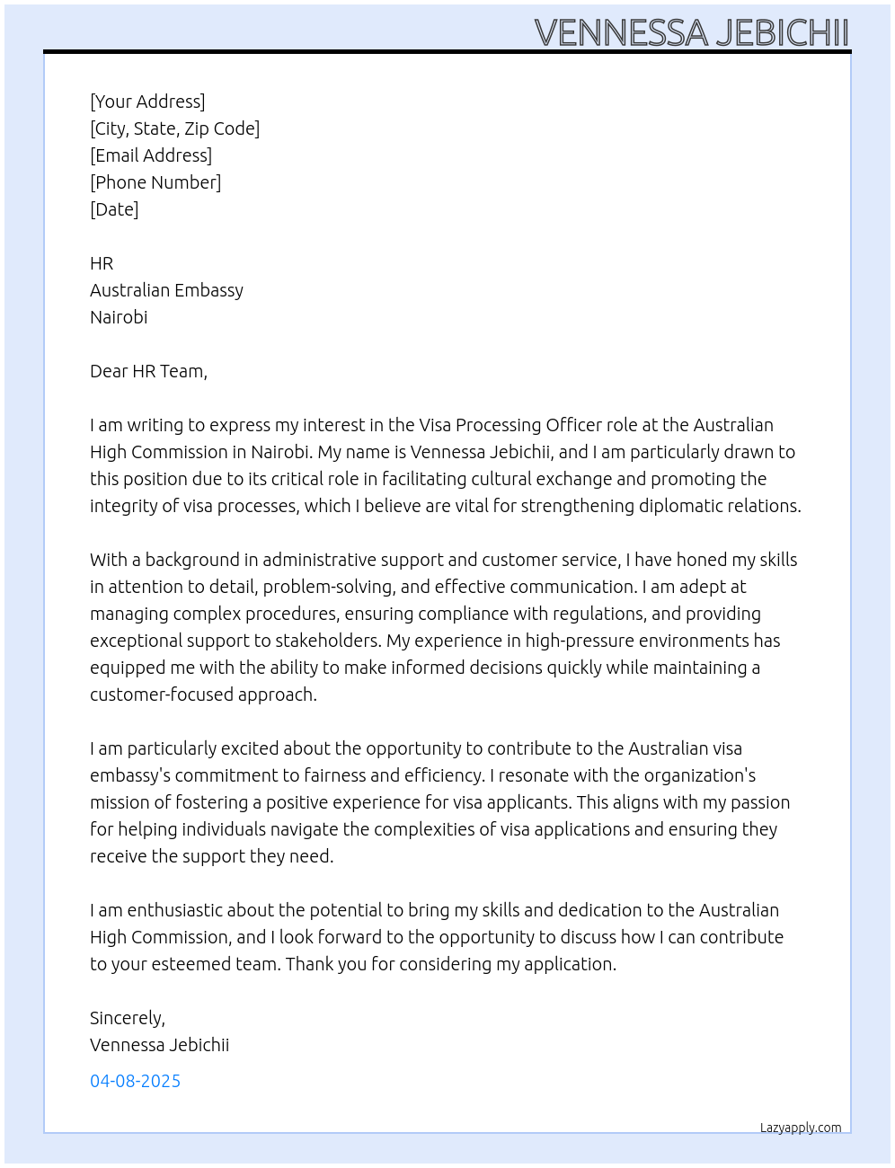 Job Application Tips For Visa Processing Officer Roles At The Australian High Commission, Nairobi Cover Letter Examples And Template