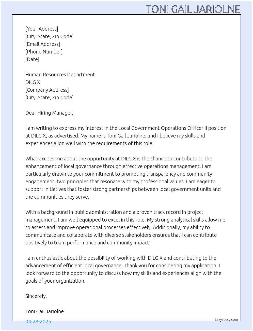 Local Government Operations Officer Ii Cover Letter Examples And Template