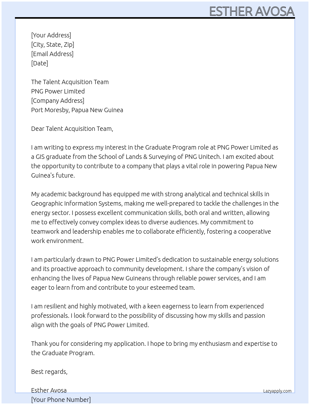 Png Power Limited Graduate Program As A Gis Graduate From The School Of Lands & Surveying Of Png Unitech Cover Letter Examples And Template