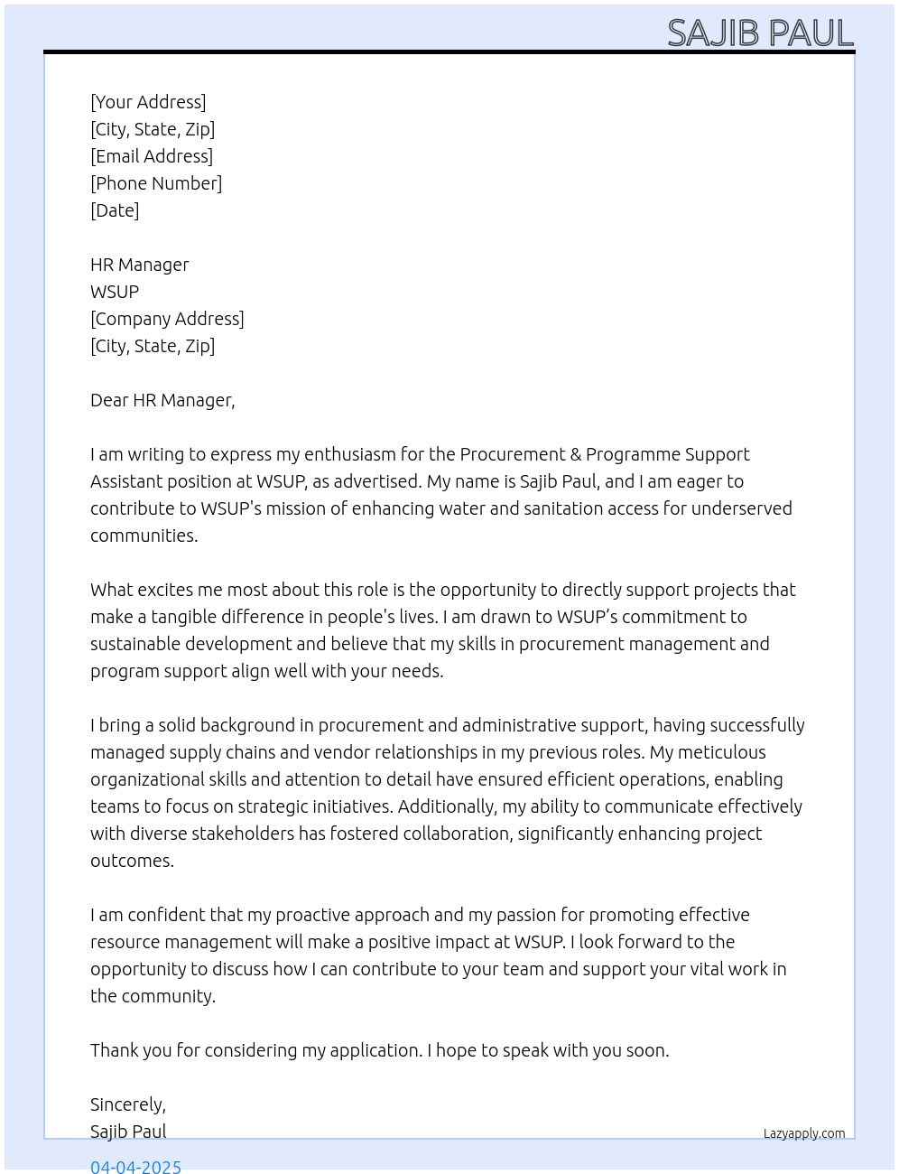 Procurement &programme Support Assistant Cover Letter Examples And Template