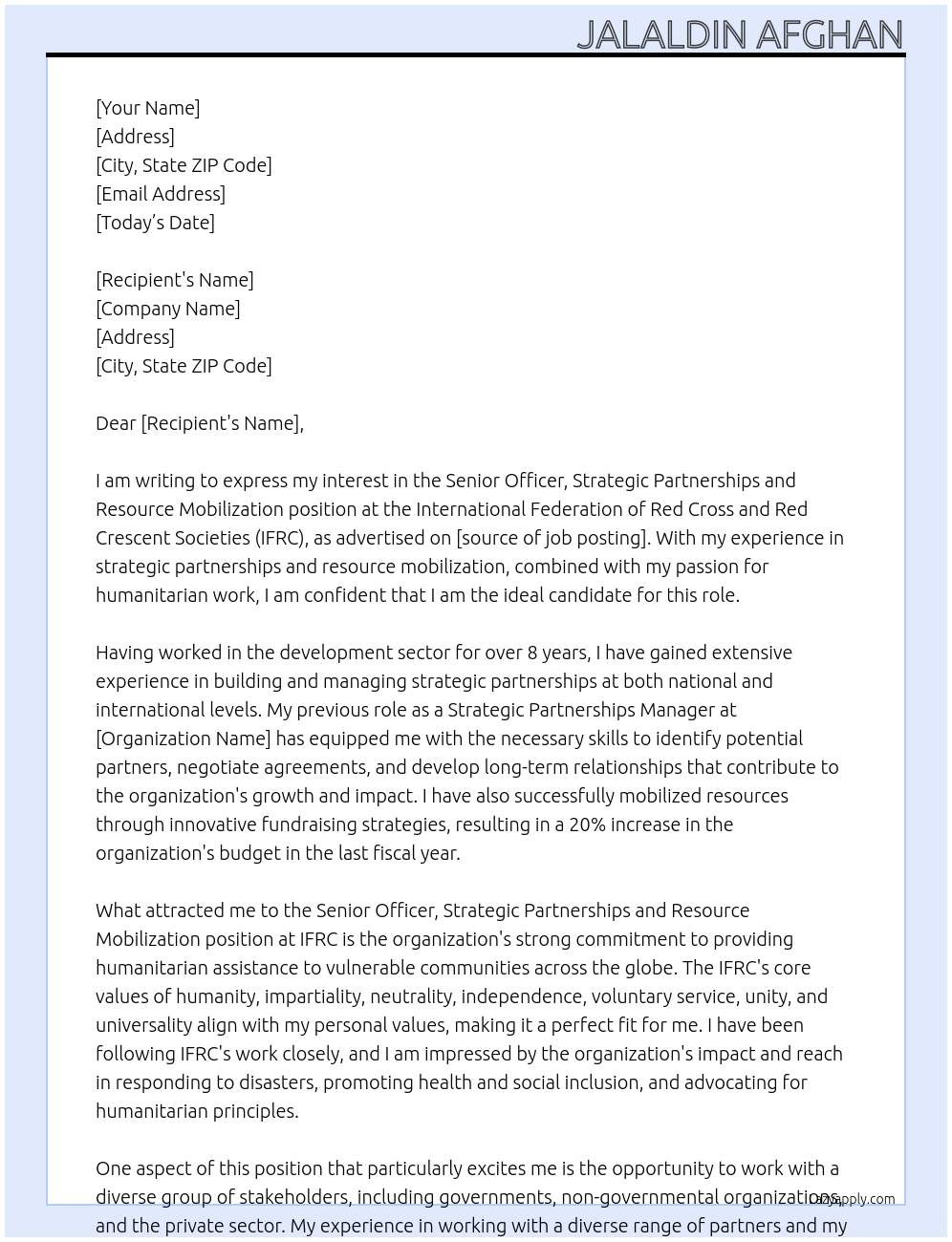 Senior Officer, Strategic Partnerships and Resource Mobilization Cover Letter At IFRC