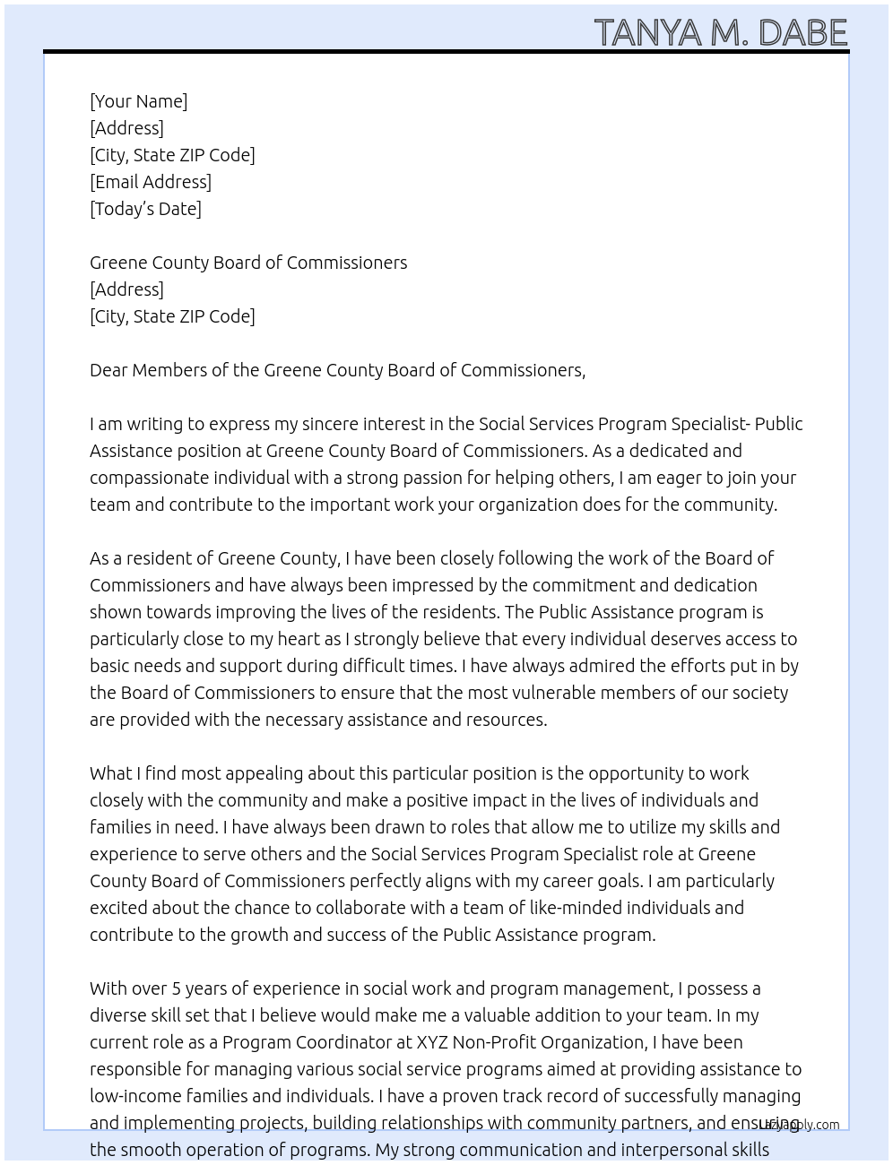 Social Services Program Specialist- Public Assistance Cover Letter Examples And Template