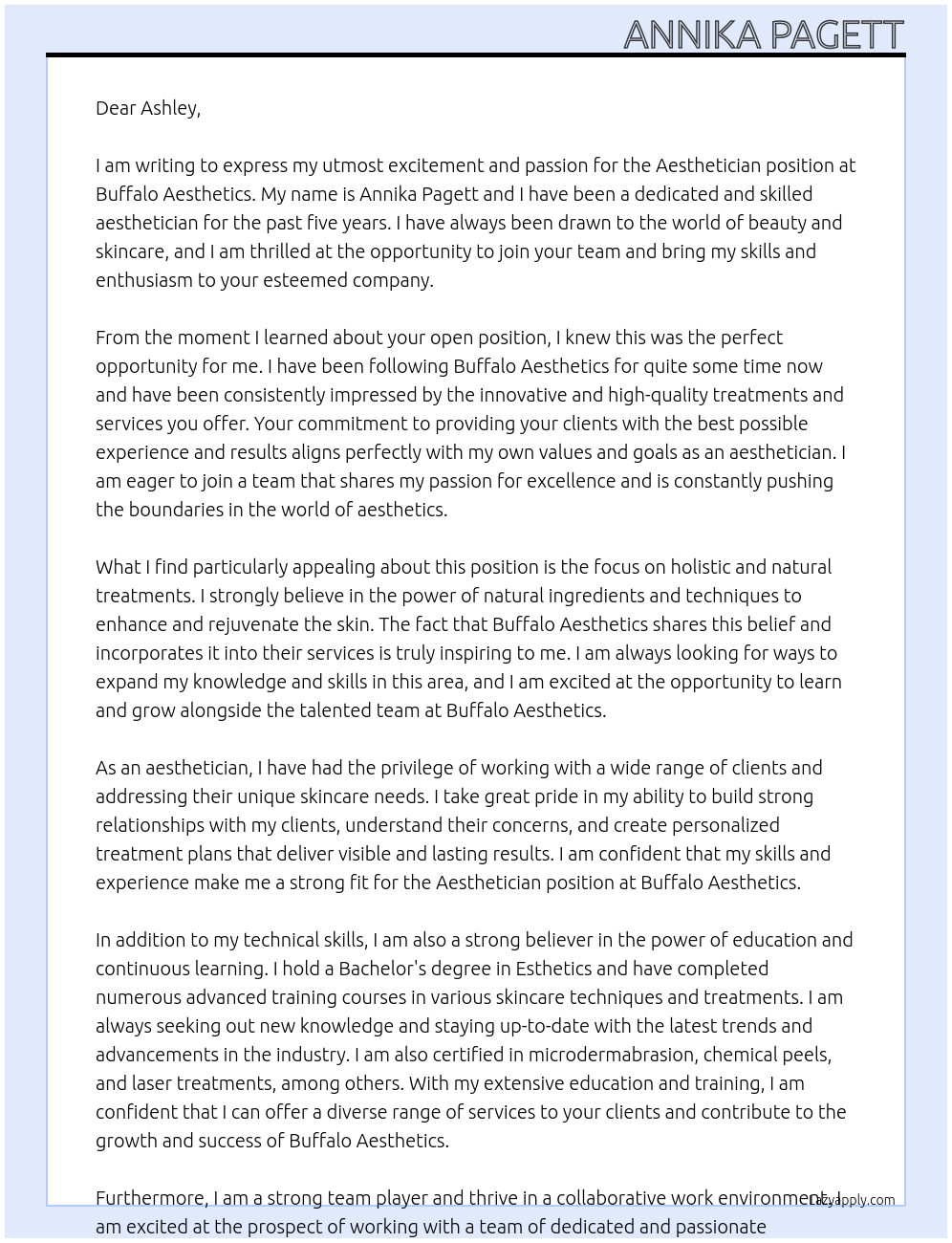 Aesthetician Cover Letter At Buffalo Aesthetics