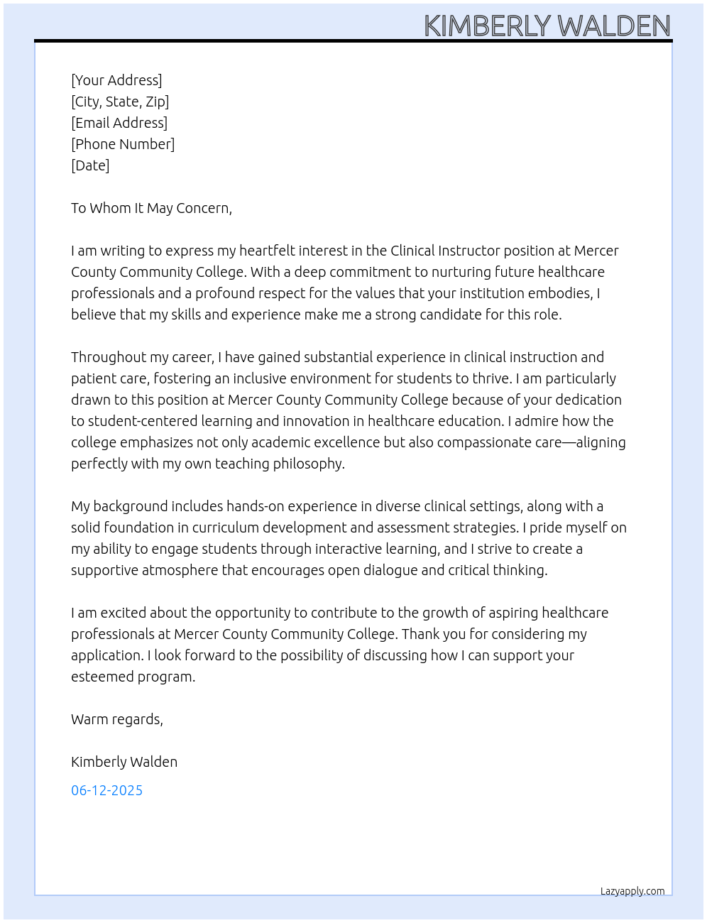 Clinical Instructor Cover Letter At Mercer County Community College