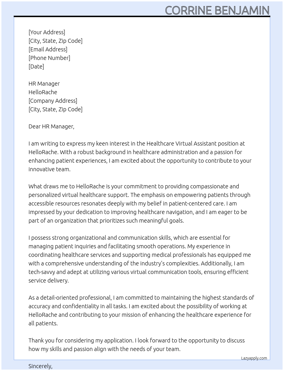 Healthcare Virtual Assistant Cover Letter At HelloRache