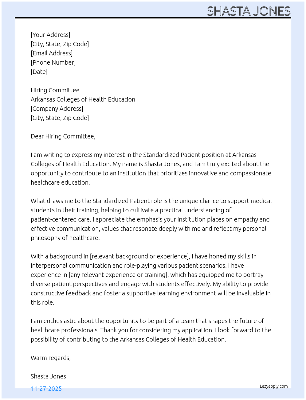 Cover letter for standardized patient - LazyApply