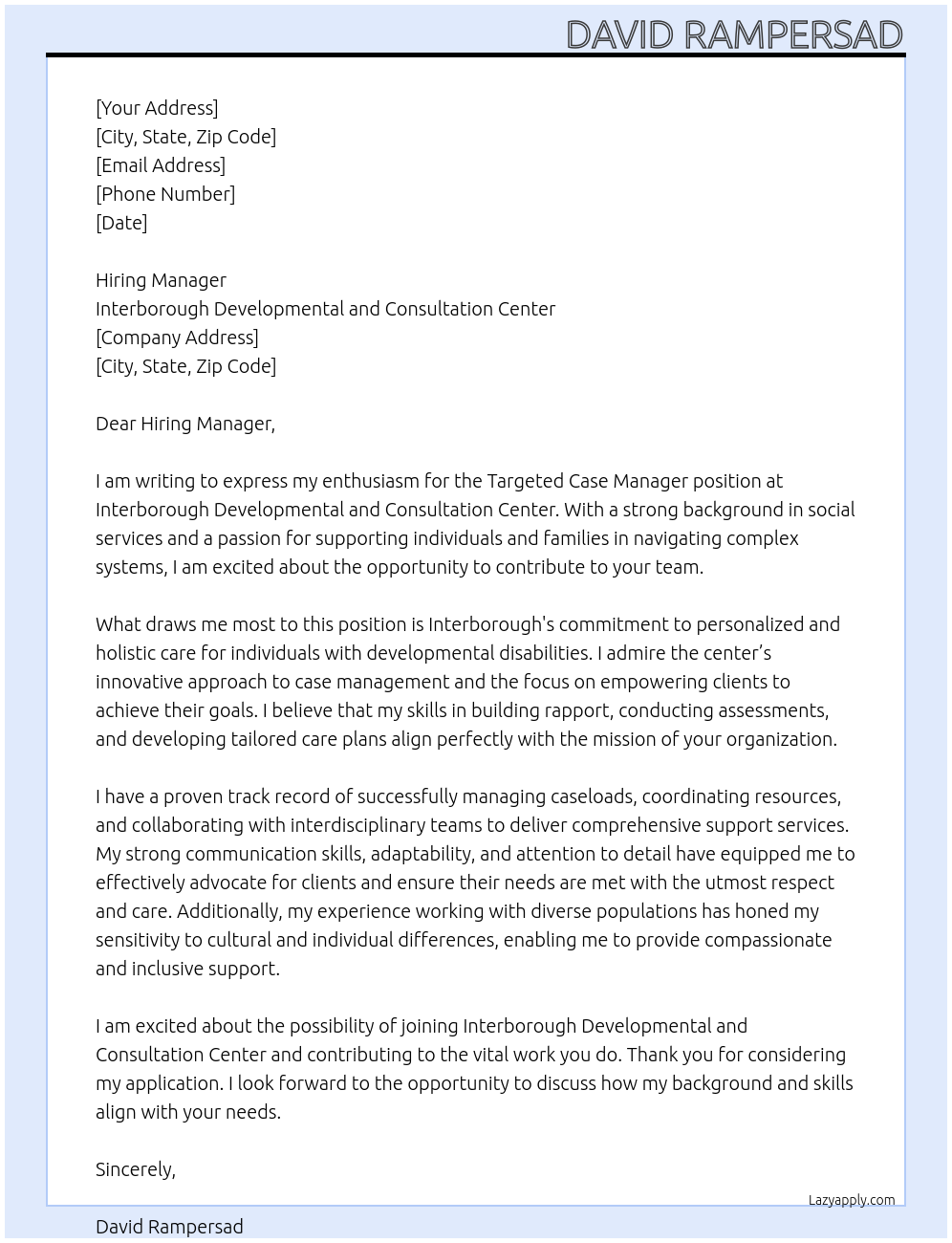Targeted Case Manager Cover Letter At Interborough Developmental and Consultation Center
