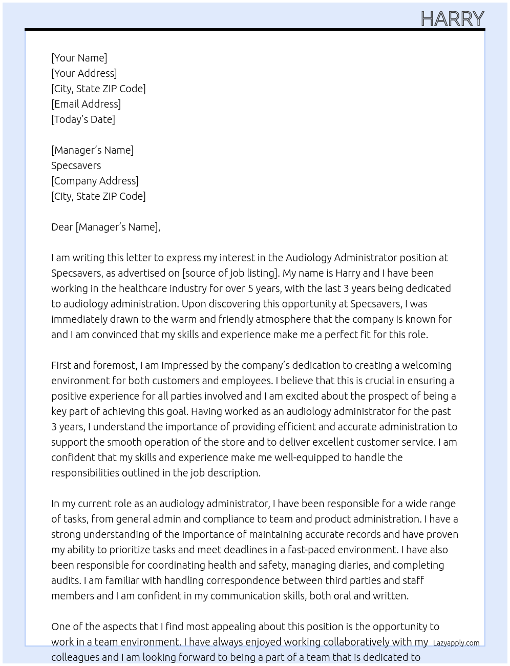 audiology administrator Cover Letter At specsavers
