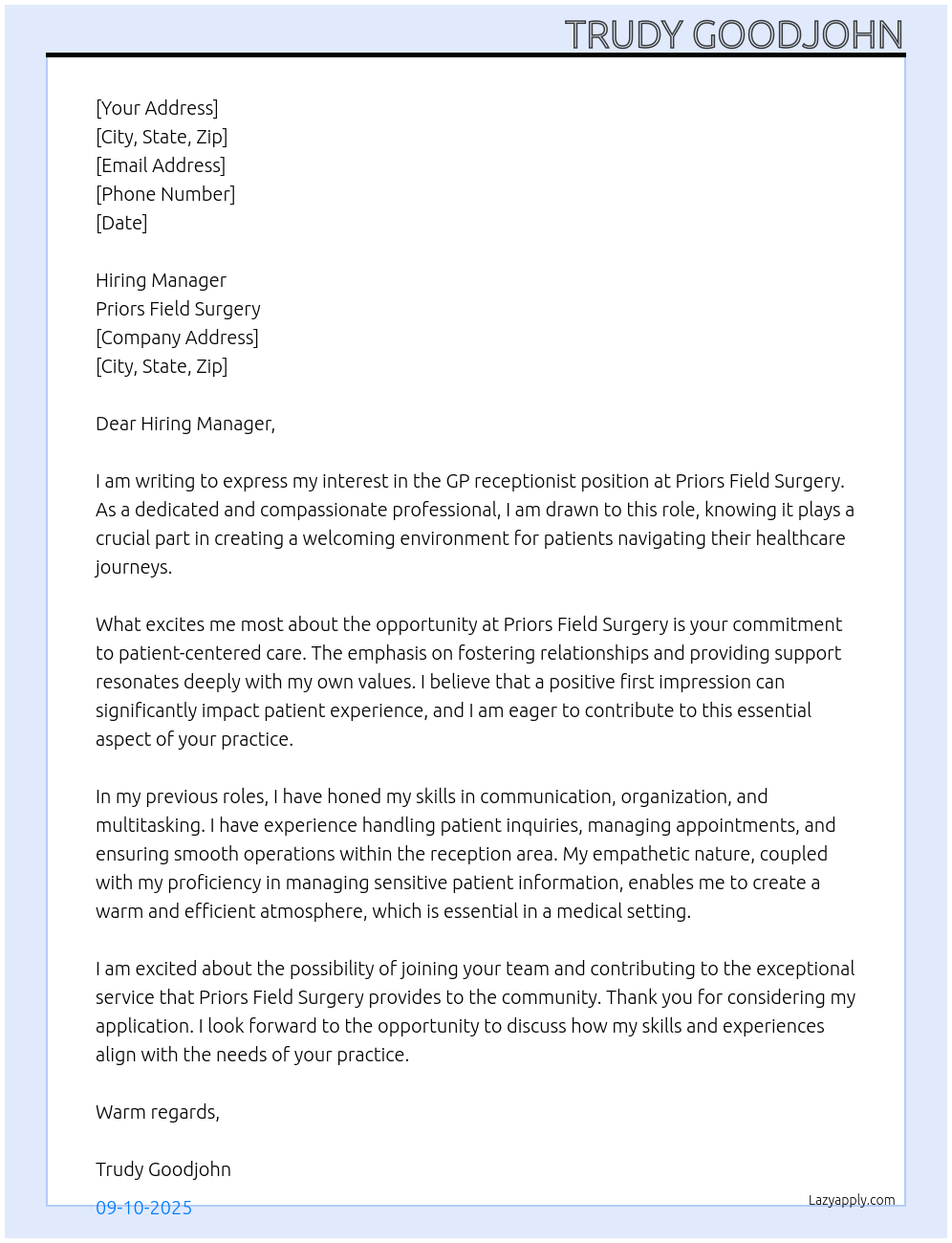 Cover letter for gp receptionist - LazyApply