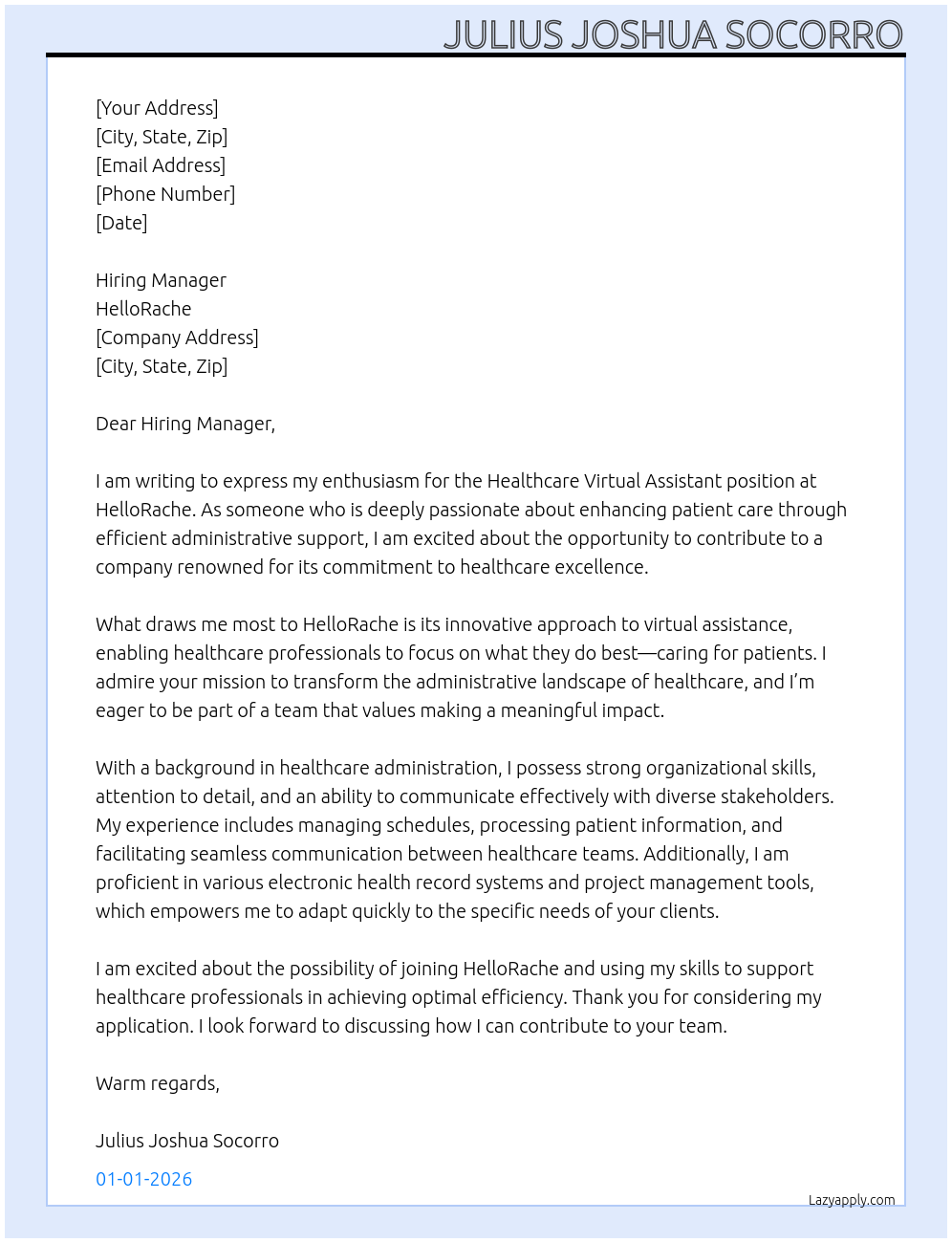 Healthcare Virtual Assistant Cover Letter At HelloRache