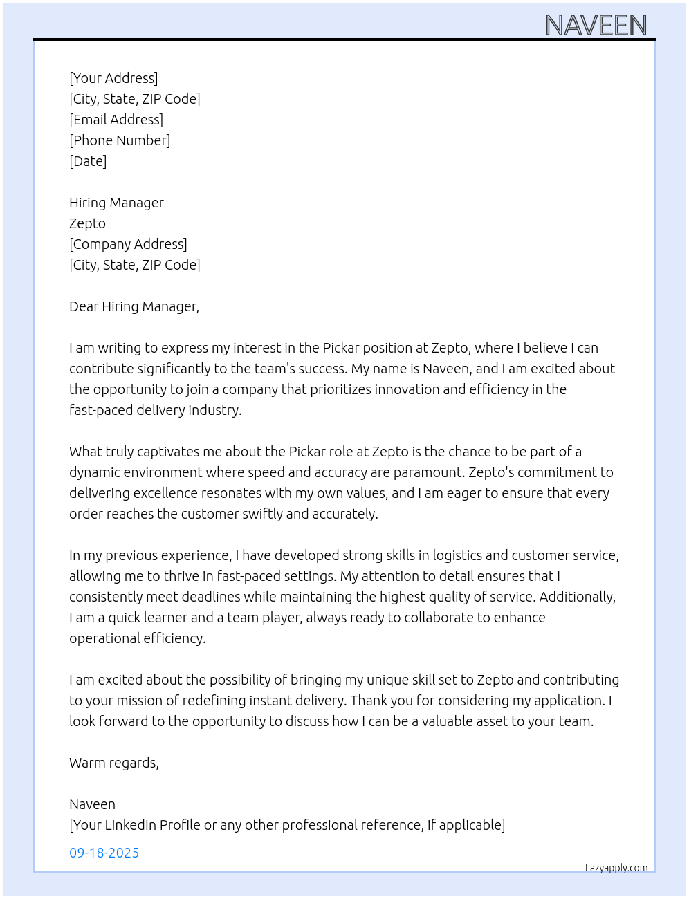 Pickar Cover Letter At Zepto