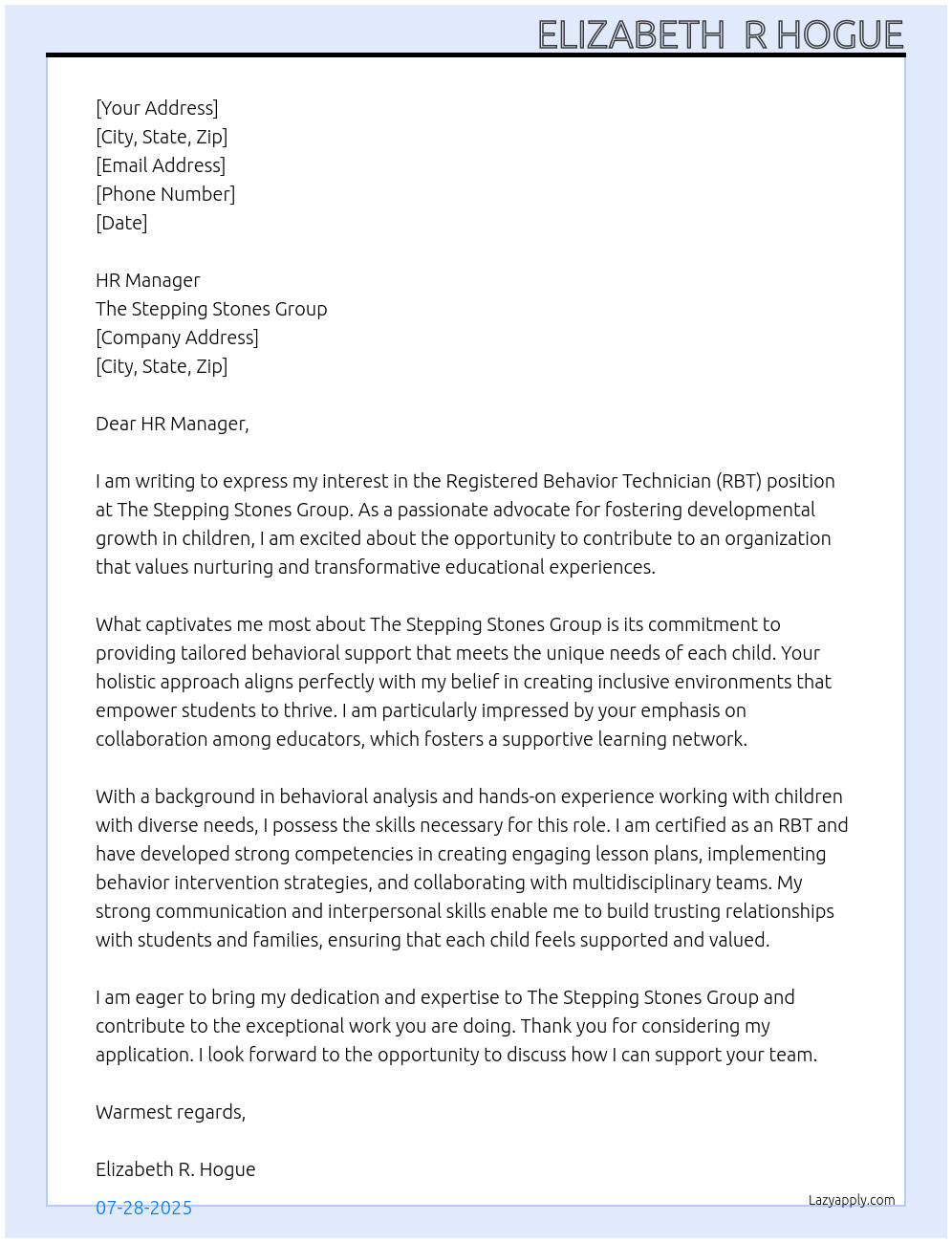 Rbt Cover Letter