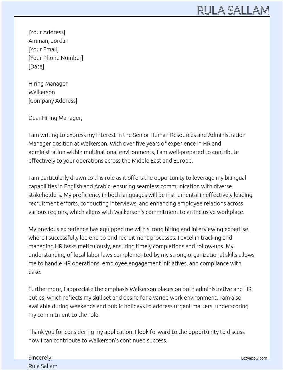 and employee engagement initiatives. - Compliance: Ensure all HR practices comply with local labor laws in the Middle East and Europe. - Administrative Oversight: Manage office operations