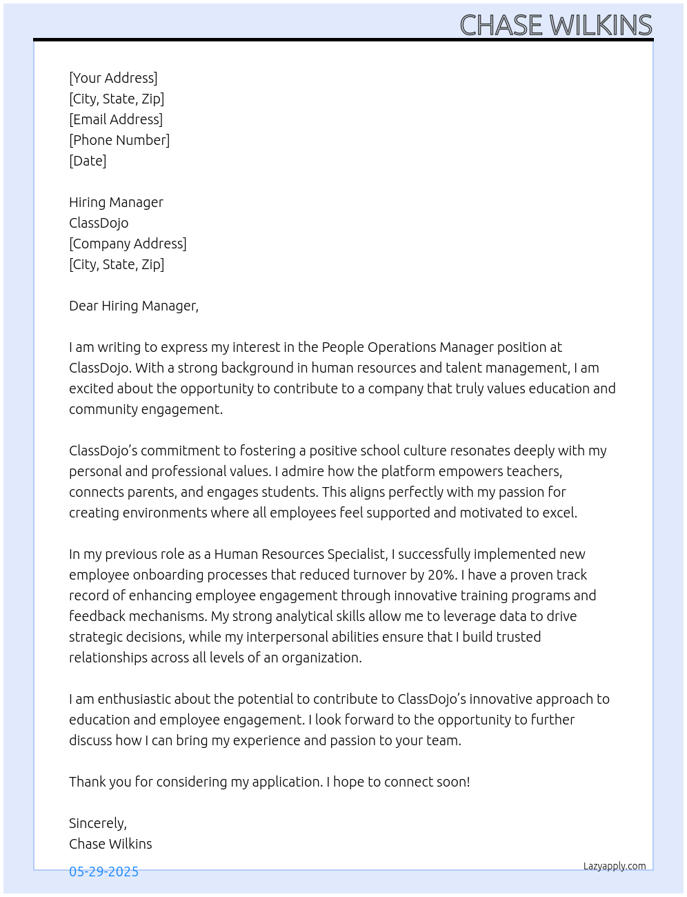 Cover letter for people operations manager - LazyApply