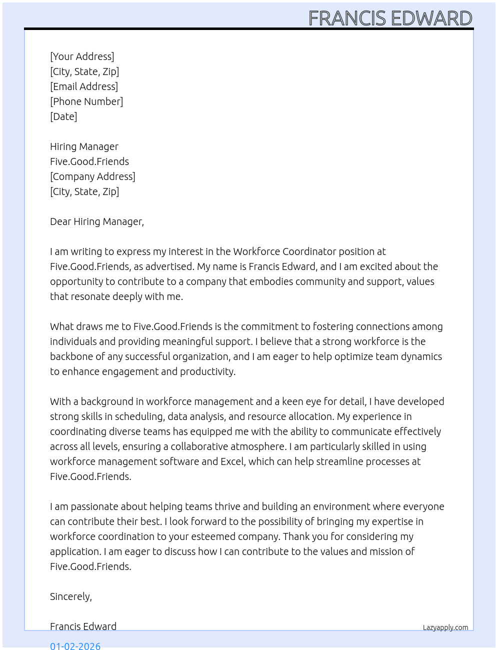 Workforce Coordinator Cover Letter At Five.Good.Friends