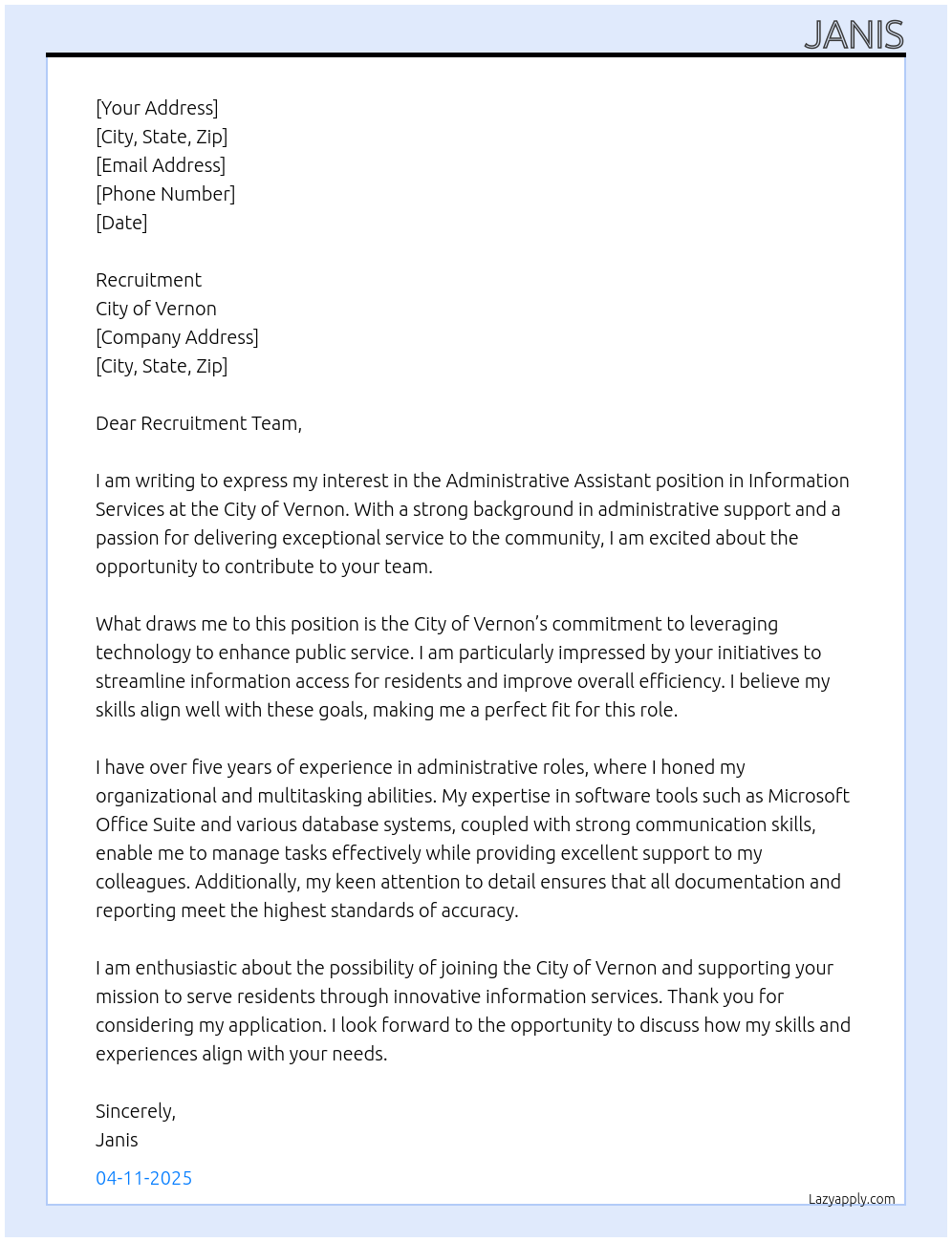 Administrative assistant Information Services Cover Letter At City of Vernon