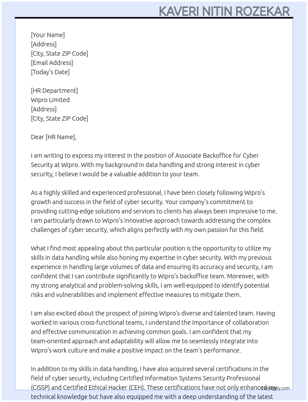 Associate Backoffice , Cyber Security Cover Letter Examples And Template