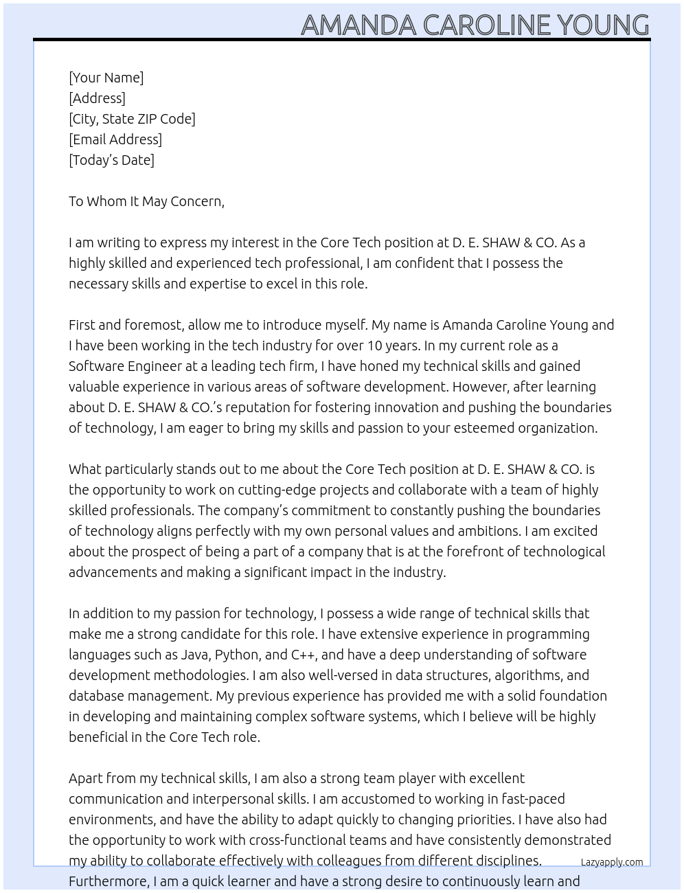 Core Tech Cover Letter At D. E. SHAW & CO.