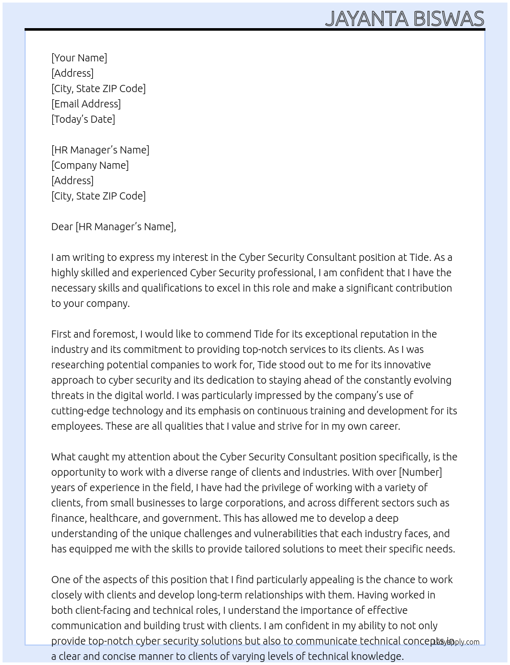 Cyber Security Consultant Cover Letter At Tide