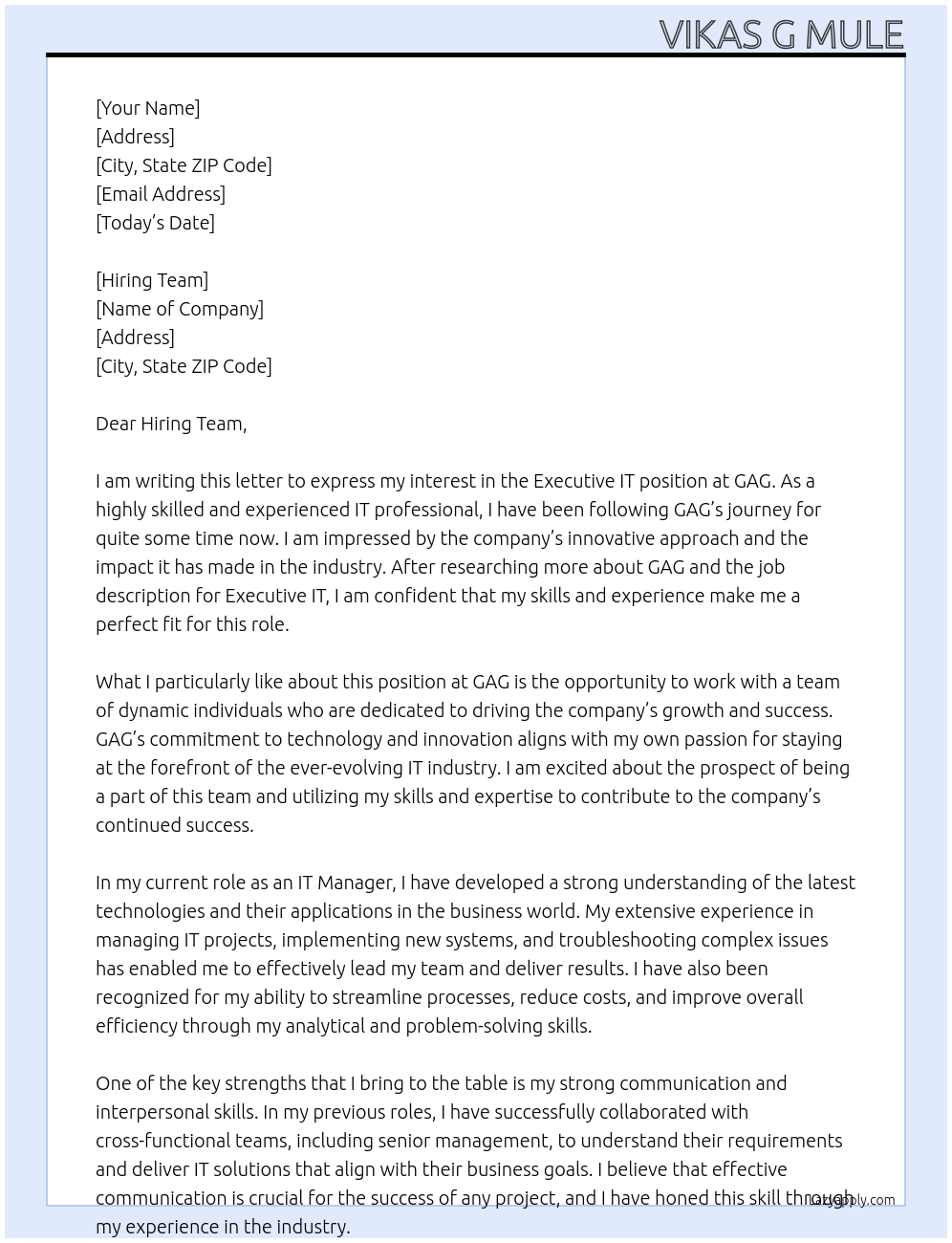 Executive IT Cover Letter At GAG