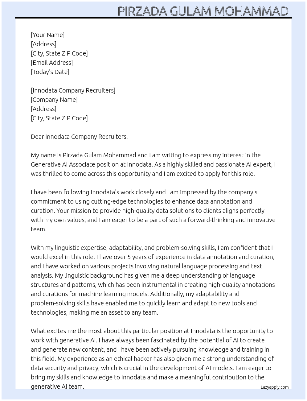 Generative ai associate Cover Letter At Innodata